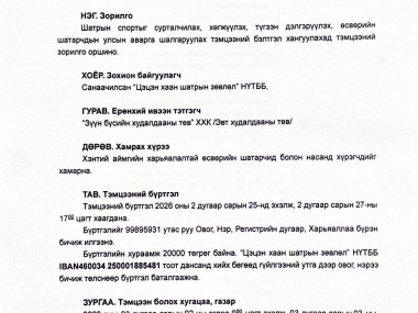 "Цагаан сар-2026" Шатрын тэмцээний удирдамж