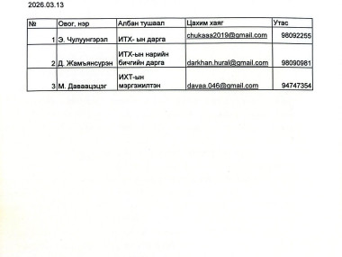 Албан тушаалтны эцэг /эх/-ийн нэр, өөрийн нэр, албаны цахим шуудангийн хаяг