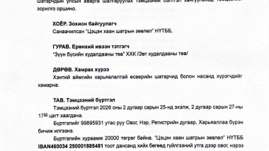 "Цагаан сар-2026" Шатрын тэмцээний удирдамж