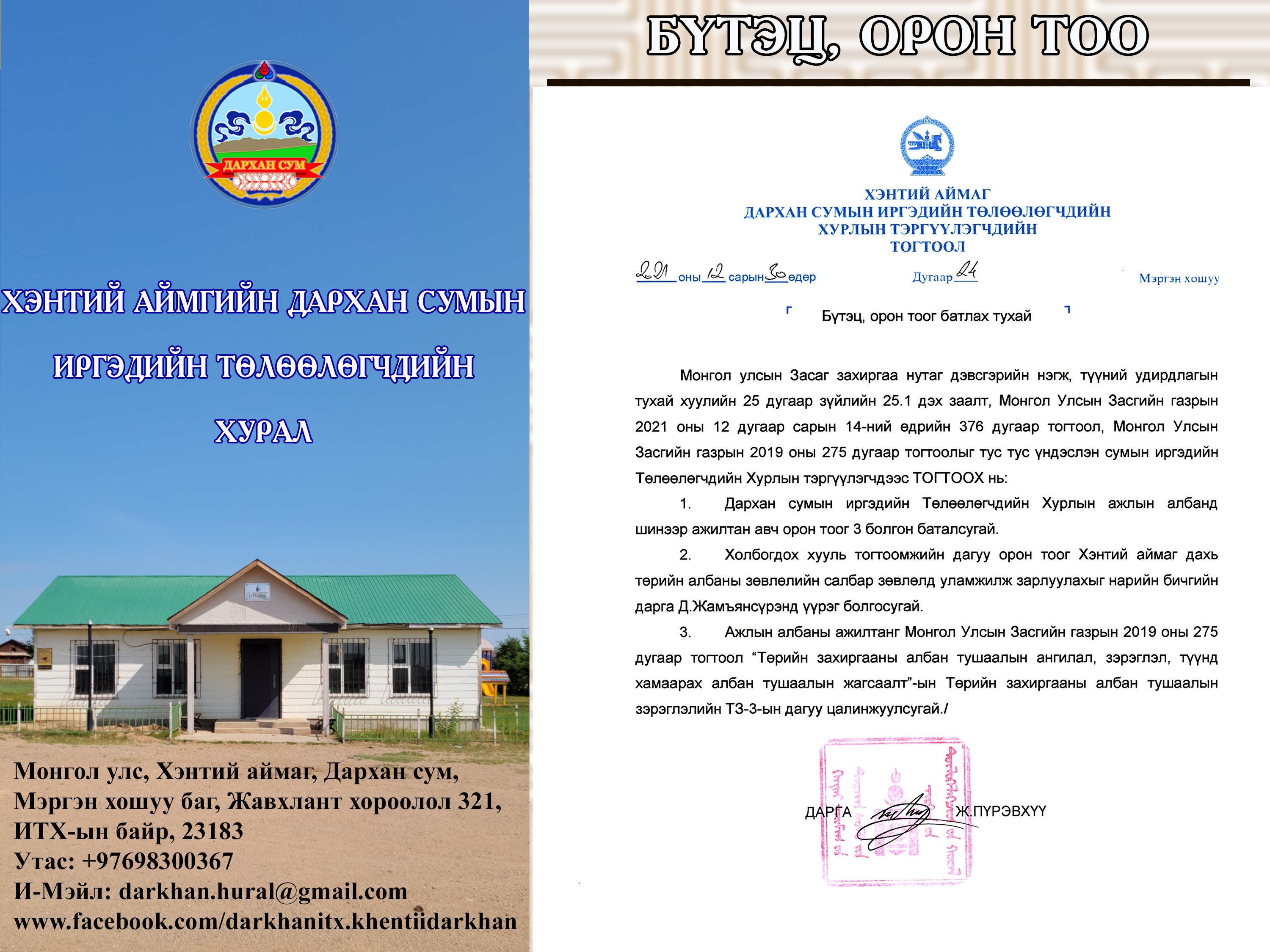 Дархан ИТХ-ын бүтэц орон тоог батлах тухай.