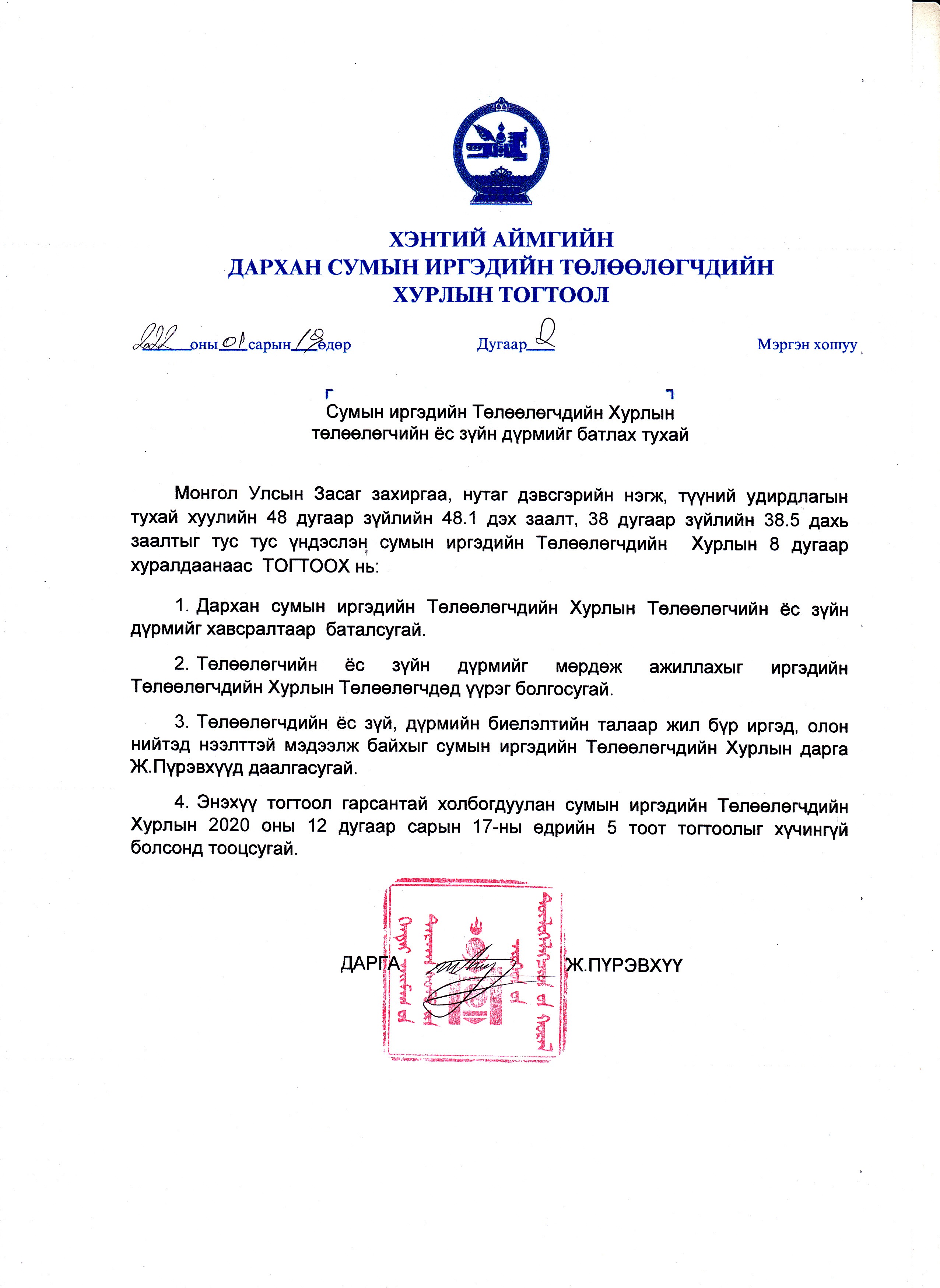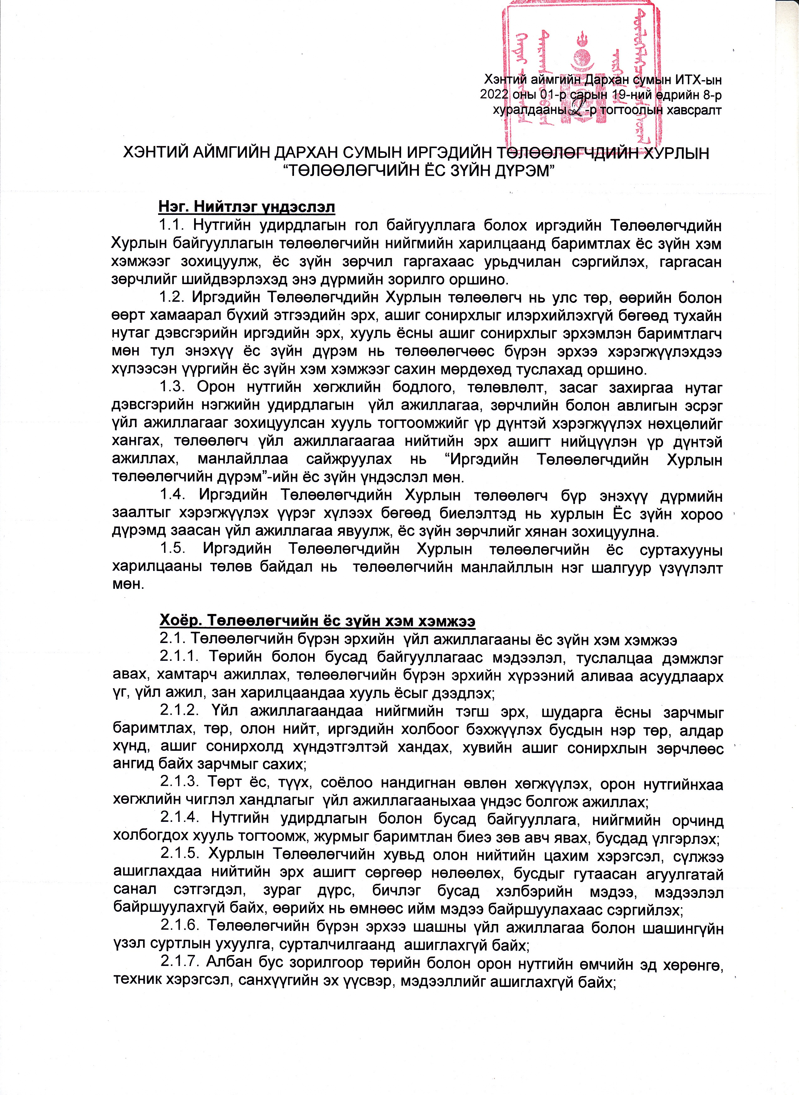 Дархан Иргэдийн төлөөлөгчдийн хурлын ёс зүйн дүрэм.